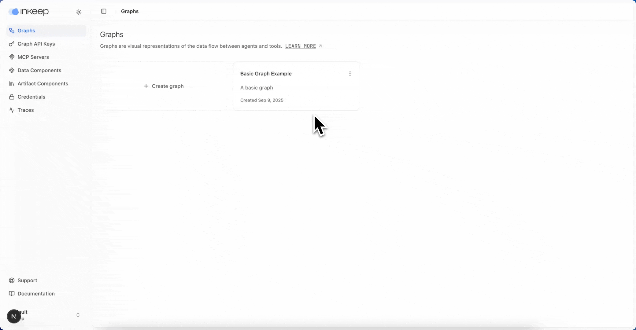 A key advantage of the Inkeep agent framework is its seamless code-to-visual workflow: define your agents programmatically, push them to the Visual Builder, and continue developing with the intuitive drag-and-drop interface.